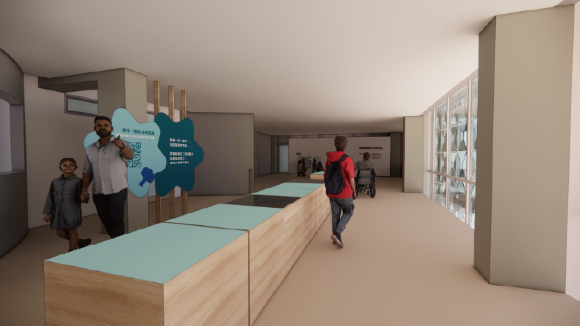 本展覽以「未來人孵化器」為主題,將場館打造為一座大型「培養皿」,觀者化身為來自 2050 年的未來人,回到 2026 年的台東,透過探索教育資源來修復喪失的生存素養。觀者入場時,需先以手機掃描 QR Code 啟動數位「未來人護照」,透過 AI 臉部偵測技術生成個人化未來人頭像與初始能力值。在穿梭於六大主題展區的過程中,觀者需透過手機與現場裝置連動,完成互動任務,藉此採集數位「時光機碎片」並累積積分,並在展覽的終點換取紀念小物。針對不使用手機的長者或低齡孩童,現場亦配置了如實體拼圖、走獨木橋等實體互動方式,確保全民皆能參與。