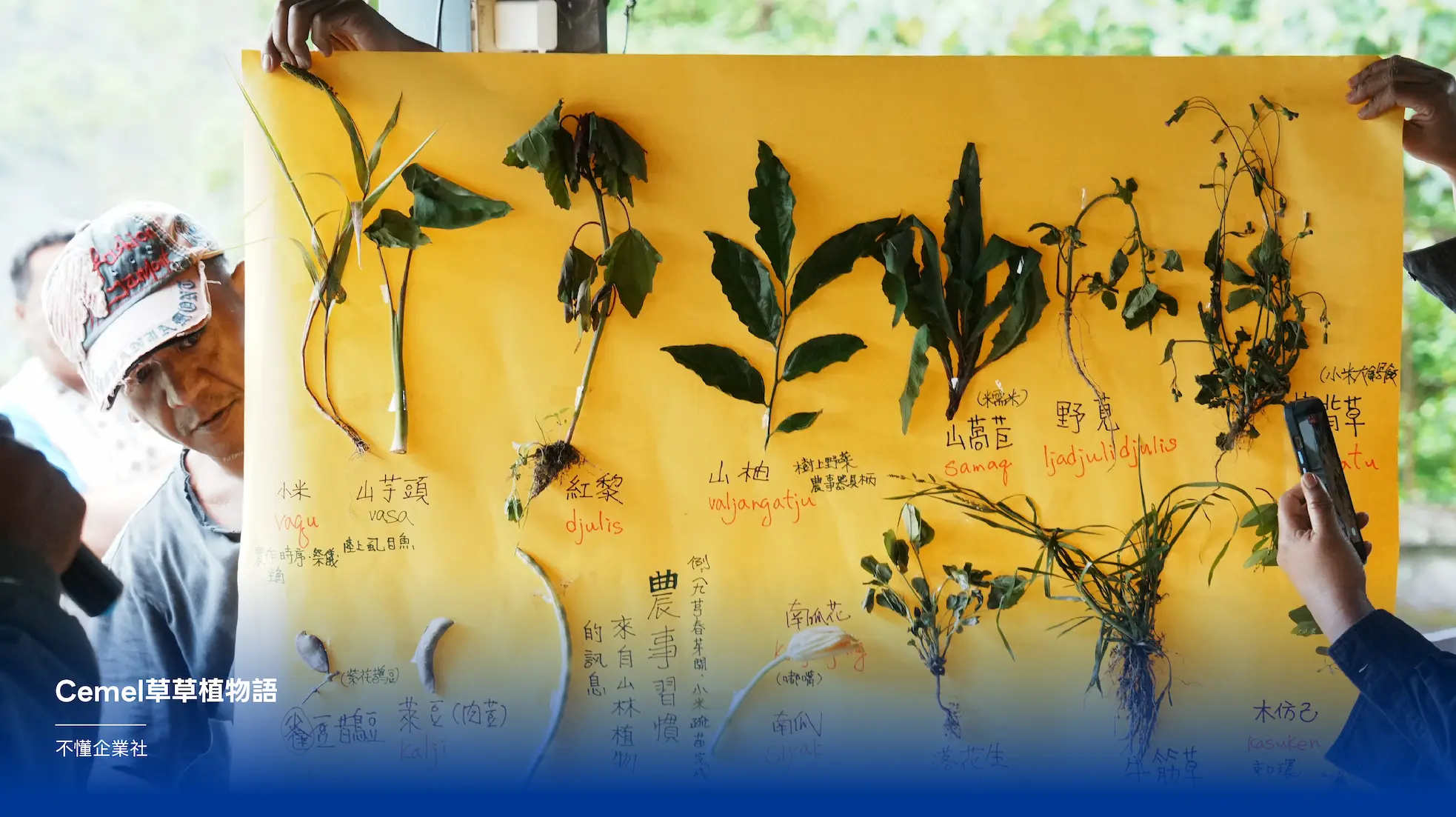 排灣族語「cemel」可以是草,可以是垃圾,也可以是醫療用藥。座落於土坂部落的不懂企業社,邀請部落族人共同設計體驗活動,由排灣族植物命名的角度,以及與大自然和平共處的山林智慧切入,帶領人們實際進入「cemel」的自然環境,重新認識常見植物,進而學習以多元視角看待萬物。
